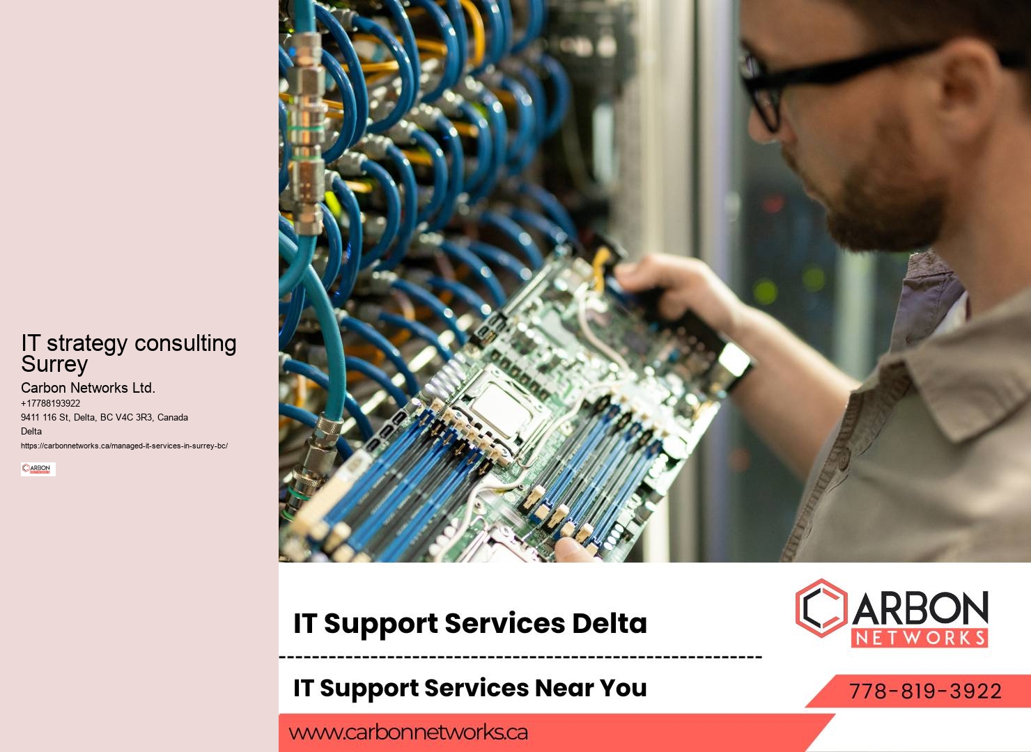 A custom-tailored IT solution that streamlined their processes, significantly reducing the time spent on administrative tasks and allowing them to focus on their clients. Plus, you're not alone in managing this new environment. After partnering with Carbon Networks, they've not only upgraded their technology, but also reduced downtime by 90%. IT contractors With Carbon Networks Ltd., you're not just getting IT support; you're securing a partner dedicated to protecting your business's future. But here's the good news: Carbon Networks is equipped with the latest technology and expertise to safeguard your digital assets. Outsourcing firms Their expert technicians are just a call or an email away, providing peace of mind that help is always within reach. One notable story involves a local retail chain struggling with outdated systems and frequent downtime. Carbon Networks Ltd steps into this role seamlessly. With Carbon Networks Ltd., you're not just adapting to the future; you're defining it, ensuring your enterprise is always several steps ahead. Your operations run smoother, and your team can focus on what they do best, without the constant interruption of technical difficulties. They're taking the time to understand your workflow and challenges, tailoring their solutions to enhance your productivity. This means they're on the lookout 24/7, ensuring your systems run smoothly and any potential issues are nipped in the bud before they can cause real trouble. They'll identify areas for improvement, potential risks, and opportunities to enhance efficiency and security. You'll be kept in the loop throughout this process, ensuring that the proposed solutions meet your expectations. By diving deep into your specific challenges and goals, Carbon Networks Ltd. crafts IT solutions that not only address your current needs but also scale with your growth. Understanding the unique landscape of Surrey's business environment, Carbon Networks provides tailored IT services that cater specifically to your company's requirements. They understand that your data is invaluable and the backbone of your operations. This isn't just about fixing problems as they arise; it's about anticipating your needs and providing proactive solutions that keep your operations running smoothly. But why Surrey, and what makes Carbon Networks stand out in a crowded market?