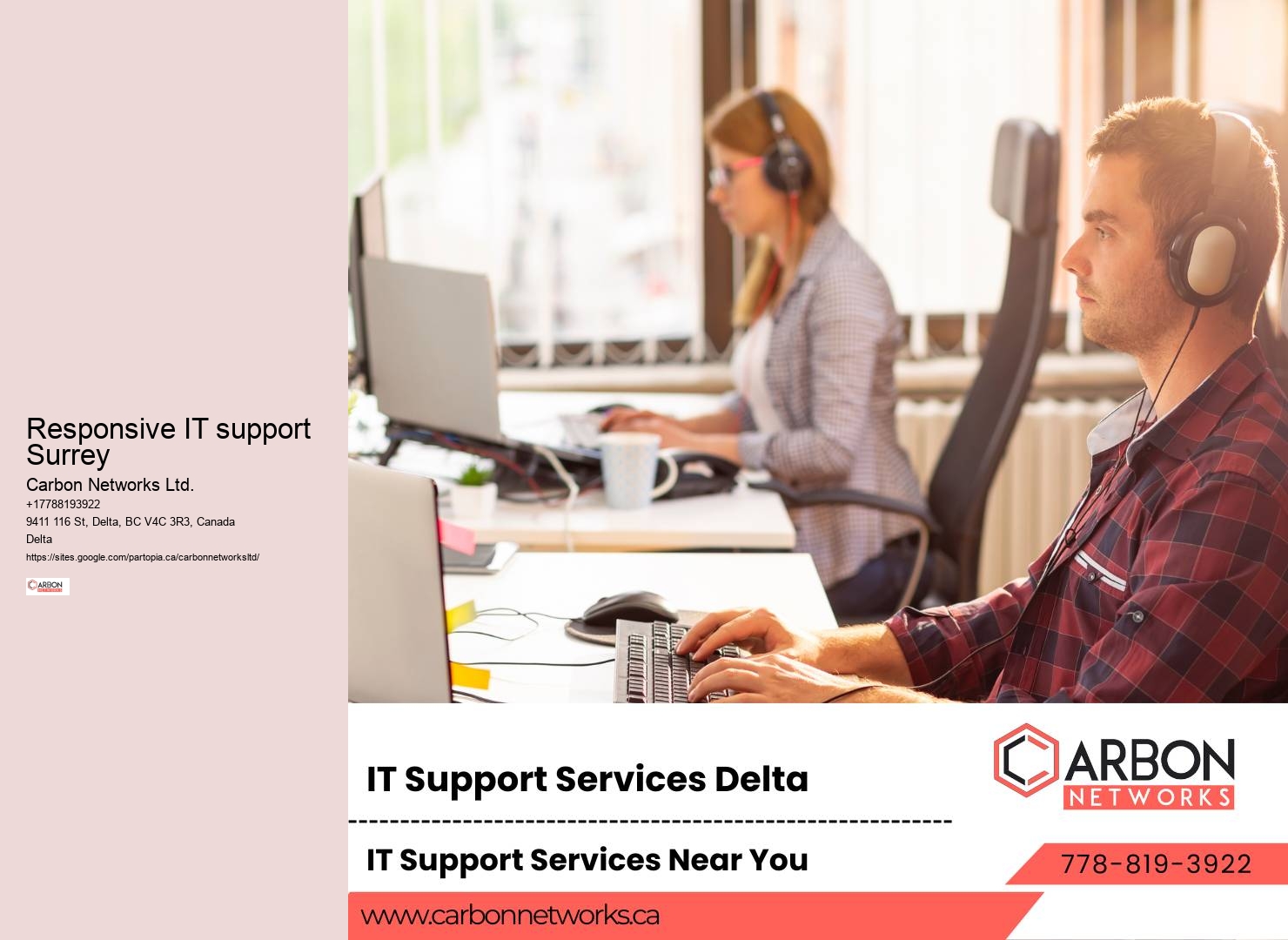 Plus, their team of experts is always on hand to guide you through the murky waters of cyber threats, offering advice and training to bolster your defenses. Well, Surrey isn't just another dot on the map; it's a thriving hub of business and technological innovation. We're investing in the future, in Surrey, and most importantly, in you. Plus, with automatic updates, you're always using the latest technology, ensuring your business stays ahead in a competitive market. You won't have to worry about downtime or disruptions throwing a wrench in your operations. They don't just fix problems; they anticipate them, ensuring your business stays up and running without a hitch. Instead of reacting to downtime, you're staying ahead, ensuring your systems are always running smoothly. With Carbon Networks Ltd. spearheading the charge in Surrey, you're in good hands. They're not just a service provider; they're your neighbor, invested in your success. Frustrating, right? Shifting focus to cybersecurity, you'll find that Carbon Networks Ltd. offers robust solutions to safeguard your data and systems from evolving threats. By partnering with a provider like Carbon Networks Ltd., businesses in Surrey can leverage expert support to navigate these complexities. You'll find that Surrey's business landscape is diverse, with a mix of startups, small to medium-sized enterprises (SMEs), and established corporations. They're integrating IoT (Internet of Things) devices to streamline operations, making your workplace more efficient and connected. You don't have to worry about outgrowing your current systems or investing in new hardware. They're your IT partner, ready to support your Surrey business with a robust portfolio of services. The result? Imagine a local retail chain that struggled with frequent system downtimes, losing valuable sales and customer trust. IT management services Tailoring IT solutions to your business's unique needs, Carbon Networks Ltd. ensures you're not just another number in the crowd. With their help, you're not just adopting new tech; you're weaving it into the very fabric of your operations, ensuring seamless synergy across all departments.
